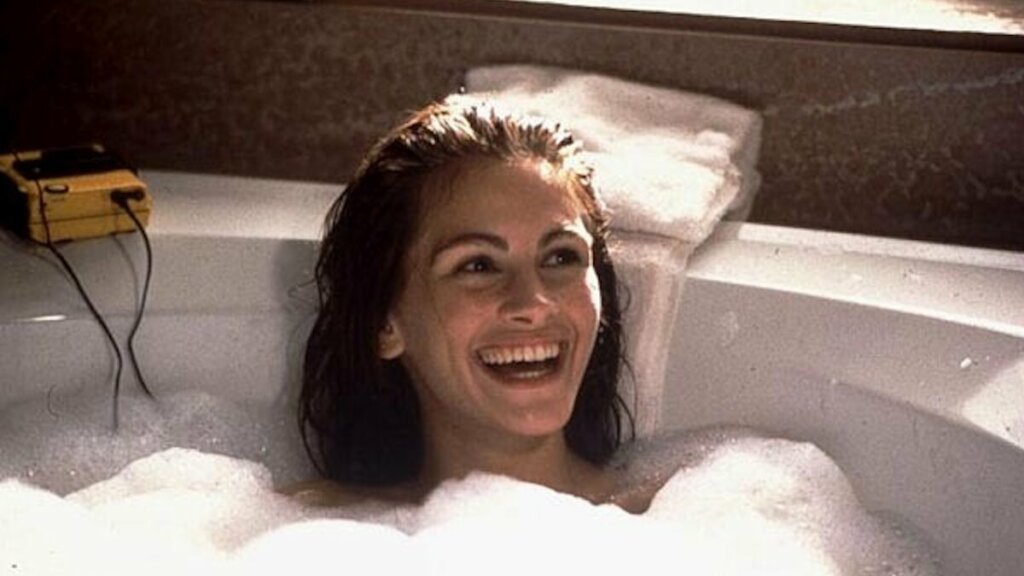 Когда Эдвард и Вивиан договаривались о цене, за которую девушка неделю проведет с клиентом, они сошлись на трех тысячах долларов. От радости героиня ныряет под воду в ванной. В изначальном сценарии этого не было, но Маршаллу понравился момент, и его было решено оставить. Но вот проблема: густая пена никак не могла остаться на лице Джулии Робертс, поэтому в воду добавили еще и моющее средство. Оно вымывало рыжий пигмент из волос актрисы, поэтому ее приходилось снова подкрашивать.