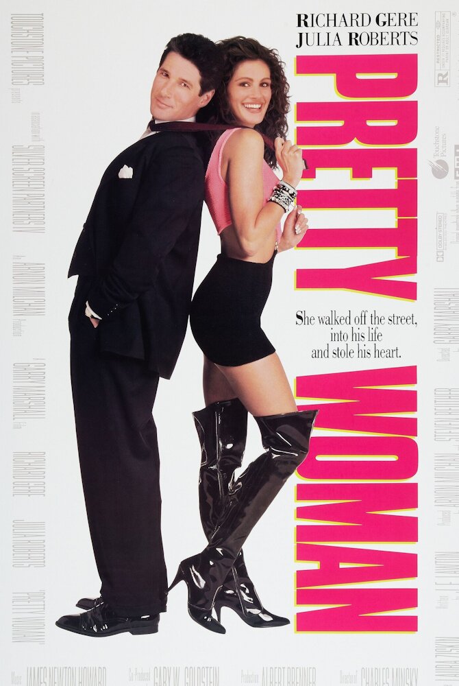 Фильм с Джулией Робертс и Ричардом Гиром повествует о любви финансового магната и «легкодоступной» женщины. Они преодолевают социальные и моральные барьеры, чтобы быть вместе. Фильм номинировали на «Оскар», «Сезар» и премию Британской академии, но награду получила только Джулия Робертс — «Золотой глобус» за лучшую женскую роль.