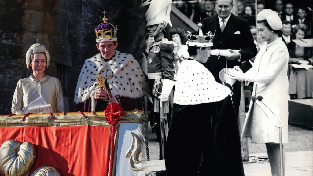Во многом костюмы были очень похожи на оригиналы: наряды принцессы Дианы и принца Чарльза во время путешествия по Австралии, свадебное платье принцессы Маргарет (на реплику ушла неделя, платье шилось без примерки), «розовый ансамбль» принцессы Дианы, платье, в котором Елизавета II впервые обратилась к британцам с рождественским обращением, платье, в котором королева танцевала с президентом Ганы и многие другие образы. Костюмеры повторили шлемообразный головной убор Елизаветы во время объявления Чарльза принцем — один из самых знаменитых образов королевы.