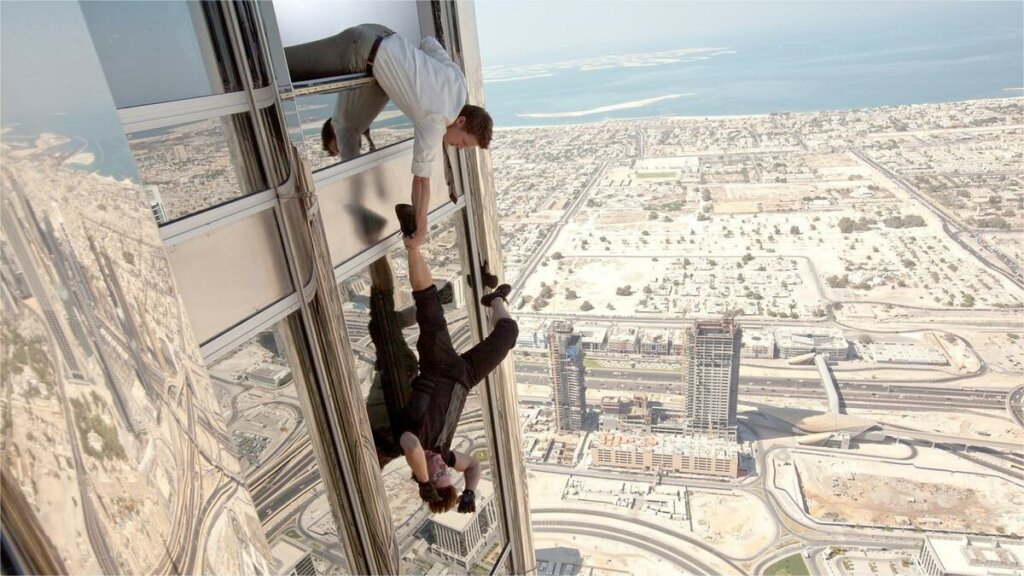 Одна из сцен фильма заставила затаить дыхание весь мир – та, где Хант штурмом берет легендарный Бурдж-Халифа на высоте более 800 метров. Эпизод снимали без участия каскадеров – Круз знаменит своим желанием выполнять все трюки самостоятельно. Покорение Томом бетонной иглы небоскреба окончательно утвердило Дубай в голливудском кинопроизводстве в качестве идеальных декораций для историй о высочайших ставках.
