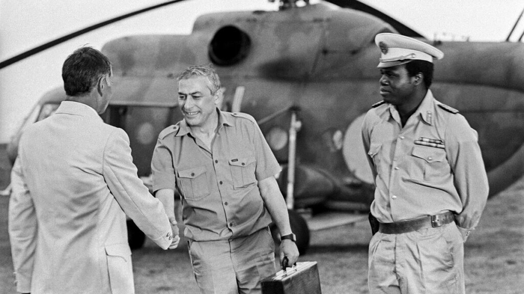 В роли Нагонии выступила Куба. Изначально часть сцен планировали снимать в Анголе, но из-за гражданской войны там было небезопасно. Прилетев в Гавану, кинематографисты были в шоке: в ходе госпереворота был ликвидирован глава Гренады Морис Руперт Бишоп. Все десять дней съемок группа слушала тревожные новостные сводки из соседней страны, а в день отлета увидели самолет Красного креста, который привез из Гренады раненых граждан Кубы. Шокировал и тот факт, что они воочию следили за переворотом в тот момент, когда снимали кино про госбезопасность.
